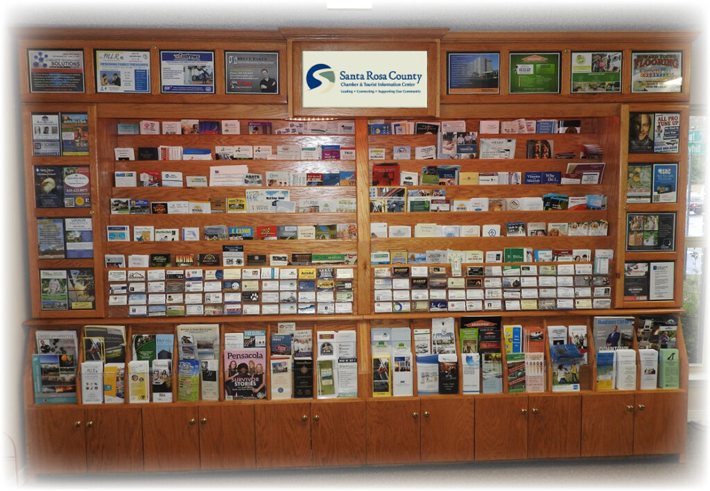 The information and resource display, located in the lobby of the Santa Rosa County Chamber of Commerce, was created specifically to help its members get their message out affordably while simultaneously supporting their local Chamber of Commerce.